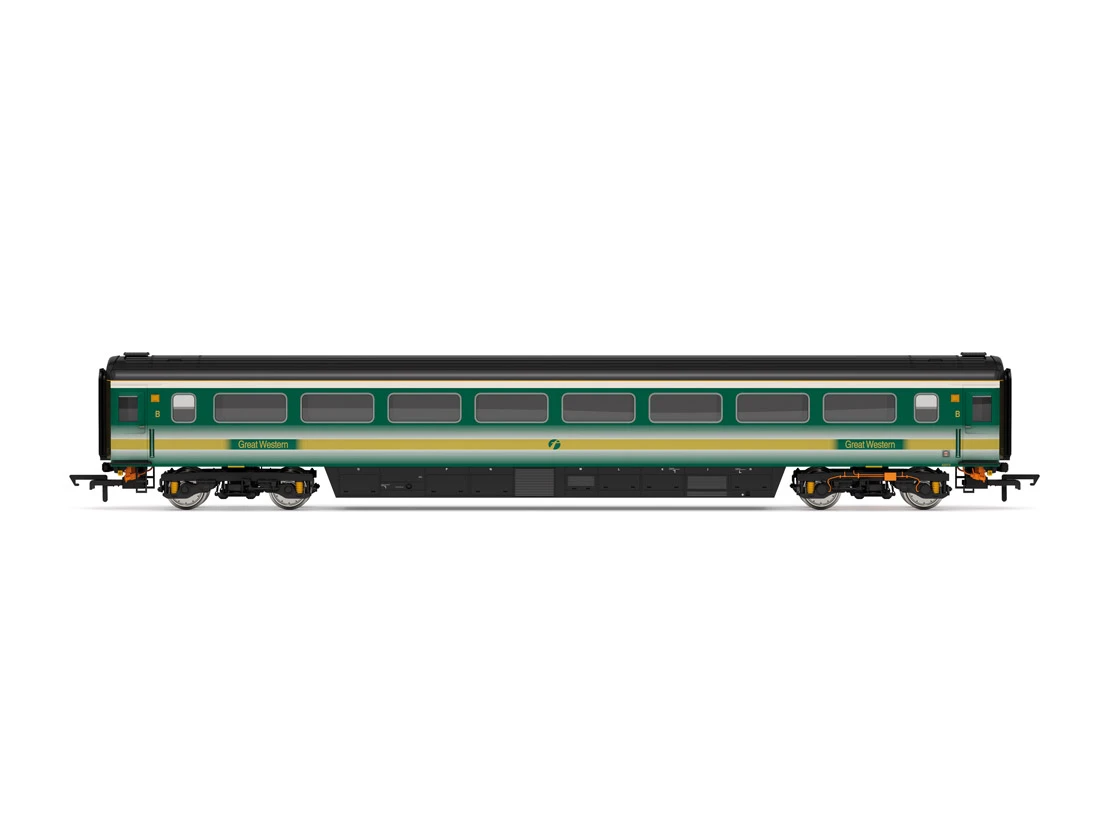 Modell: Spur 00 Gleichstrom. Personenwagen Mk3 als Trailer Standard der First Great Western. Ausgestattet mit Inneneinrichtung, NEM Kupplungsaufnahmen, englischen Hakenkupplungen.
