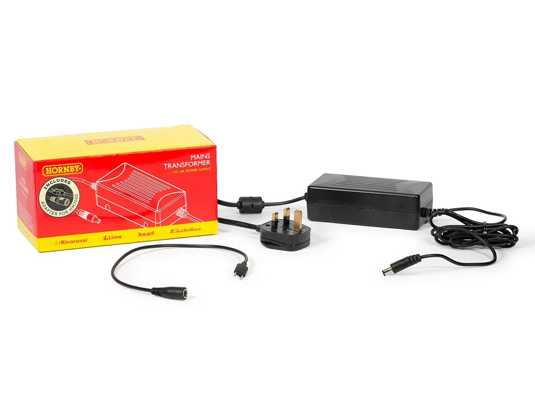 Kompatibel zum Hornby HM7000 Digitalsystem. Trafo und Anschlußkabel für das Hornby Gleissystem, zur Spannungsversorgung mit 15V AC 4A. Version mit Netzstecker für britische Steckdosen.
