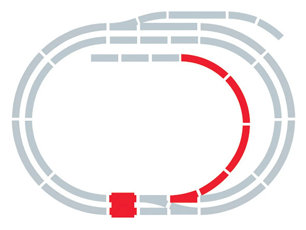 Das Set enthält alle rot markierten Elemente. Basis für die Erweiterung ist das Radius 2 Oval aus den Hornby Startersets.