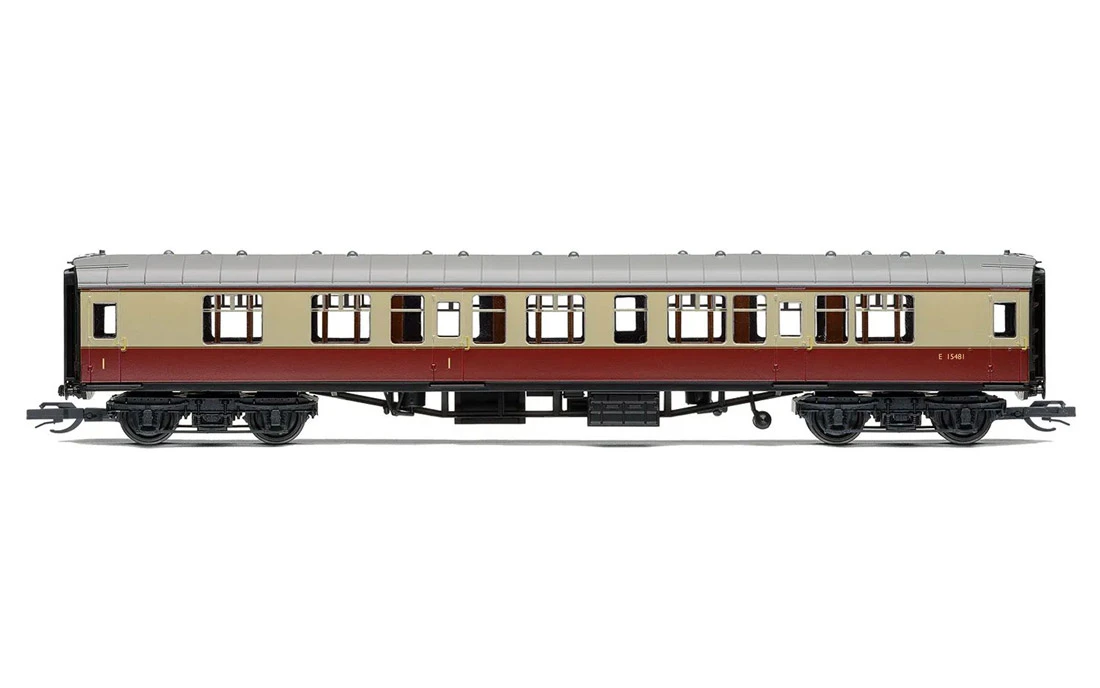 Modell: Spur TT Gleichstrom. Der Personenwagen Mk1 als Composite Corridor der British Railways ist ein hochdetailliertes Modell im Maßstab 1:120 von Hornby. Mit seinem realistischen Design und feinen Details ist er die ideale Ergänzung für jede Modellbahnanlage in Spur TT. Der Wagen verfügt über eine authentische Lackierung in den Farben der British Railways sowie über eine detaillierte Innenausstattung. Die Beschriftungen sind präzise umgesetzt und verleihen dem Wagen ein authentisches Erscheinungsbild. Dank seiner feinen Detailgenauigkeit und hochwertigen Verarbeitung ist der Personenwagen Mk1 als Composite Corridor ein Must-have für jeden Modellbahnliebhaber.